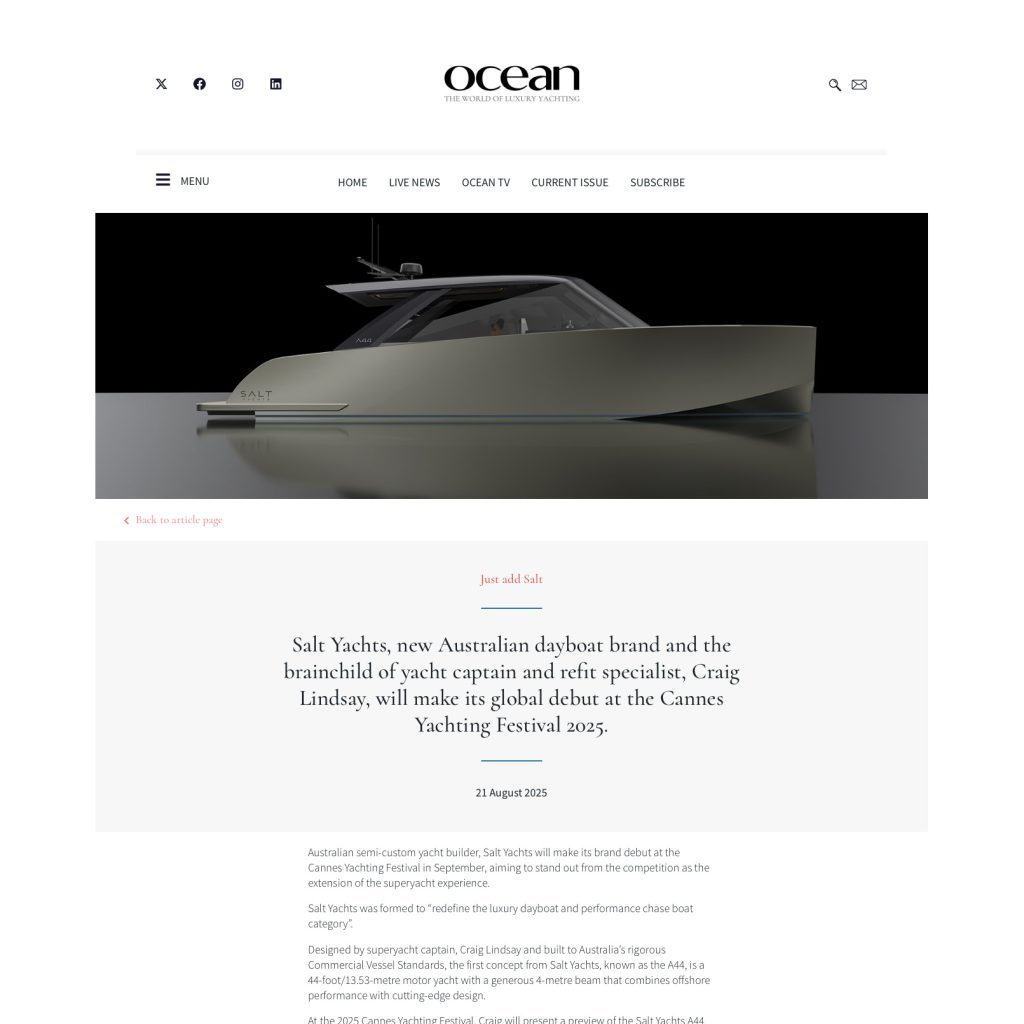 Salt Yachts, new Australian dayboat brand will make its global debut at the Cannes Yachting Festival 2025.